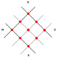 Ein in Zwischenhimmelsrichtung verlaufendes Gitter wurde als Diagonalnetz